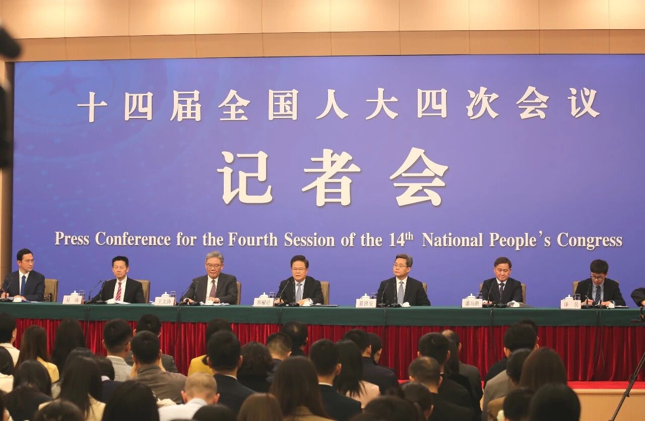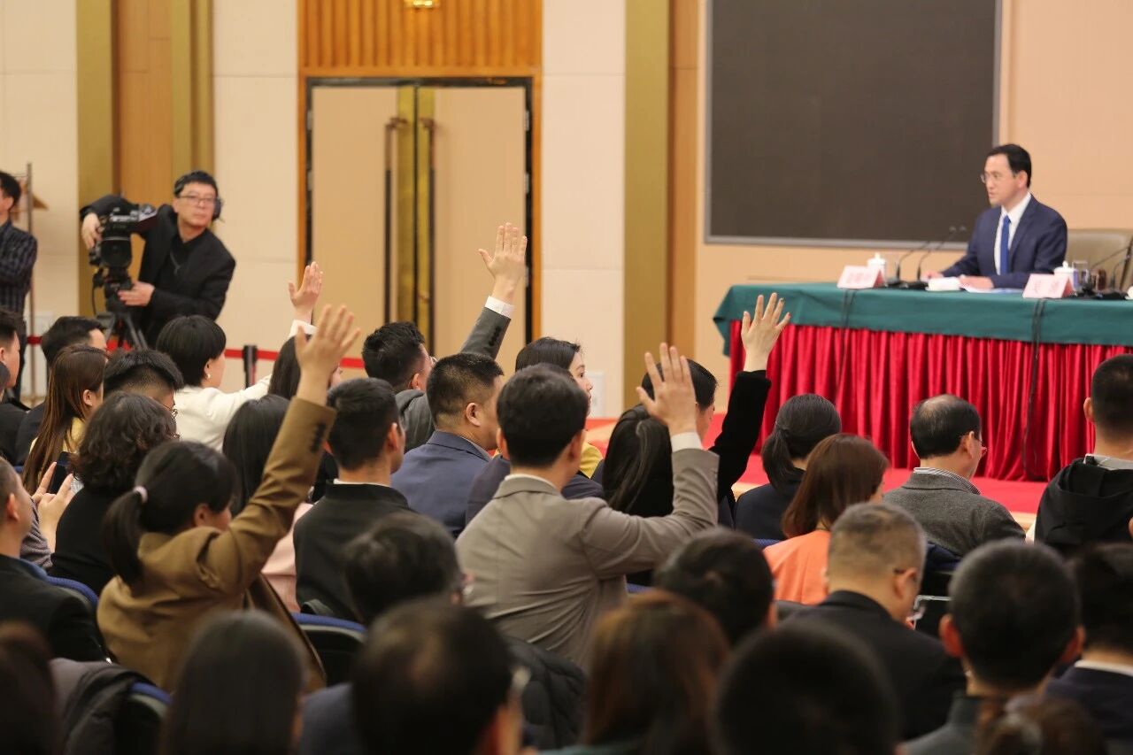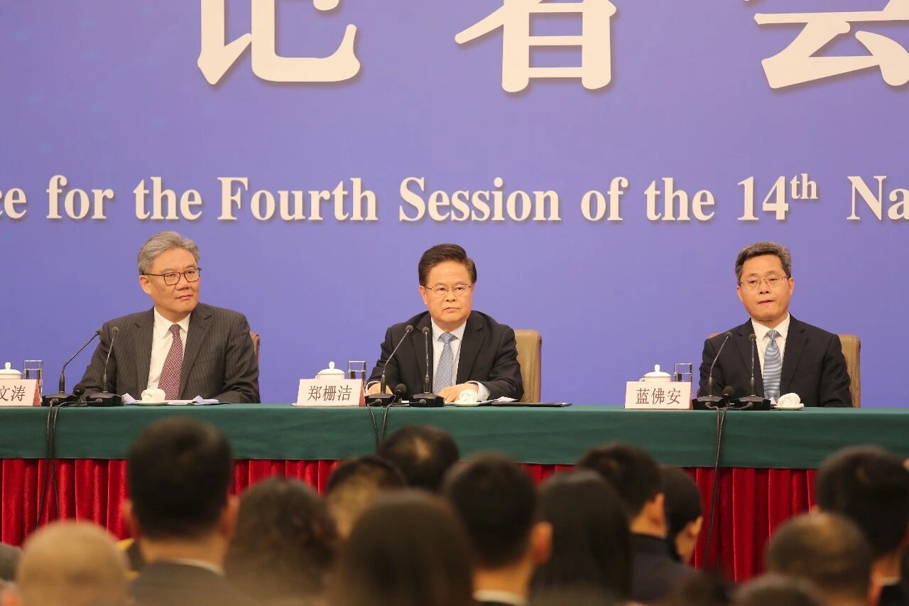3月6日,十四届全国人大四次会议在北京梅地亚中心新闻发布厅举行记者会。国家发展和改革委员会主任郑栅洁、财政部部长蓝佛安、商务部部长王文涛、中国人民银行行长潘功胜、中国证券监督管理委员会主席吴清就发展改革、财政预算、商务、金融证券等相关问题回答中外记者提问。