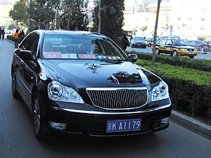 终于,功夫不负有心人。在星期六中午和煦的阳光中,一辆红旗HQ3轿车飘然而至,驾驶室挡风玻璃后并排摆放的五个奥运福娃和十七大专用车证分外夺目(这次所有十七大代表专用车,均摆放着五个奥运福娃)。当HQ3调转头,离记者越来越近时,那种久久期待的激动,令记者不能自持,情不自禁地脱口而出:“亲爱的,你终于来了。”