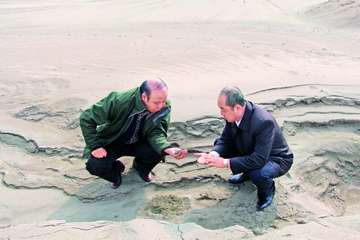 韩少杰(左)董事长在河北涉县考察当地尾矿情况