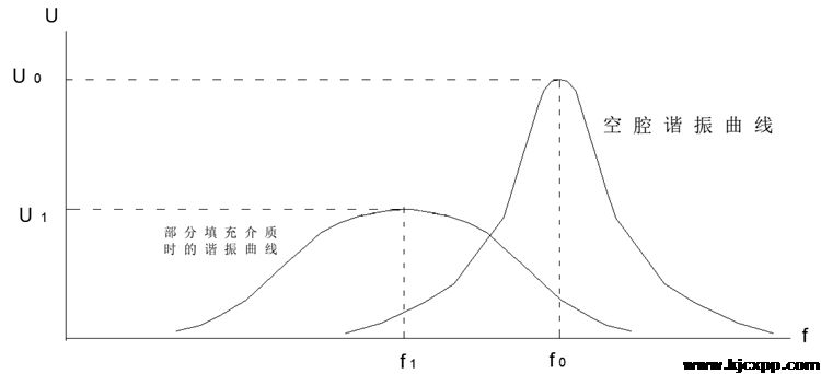 用金属容器制成的谐振腔,几何形状为圆柱形。当谐振腔内部存在非金属介质材料时,其谐振频率和谐振幅度会因填充的介质材料的多少和形状的不同而产生变化。且介质材料的不同对微波产生的响应十分敏感。(如图2)