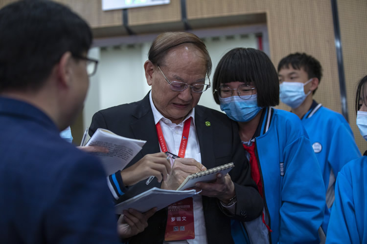 他回顾自己从小立下大志,并通过勤奋和精深钻研,一步步创造人生价值的历程。在他看来,自己的成才经历可凝练为八个字——“贵在立志 成于勤奋”。他勉励同学们,实现人生价值要有“鹰的理想和牛的精神”。看着对面的初中学生,刘院士语重心长地说,初中阶段是一个人人生观、世界观、价值观树立的关键期,也是学习方法、兴趣特长等方面提升的阶段。同学们要不负盛世时光,担负起民族复兴的时代重任。