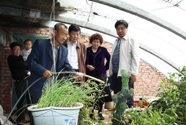李赤泉在阜新考察农民专家发明的“八位一体”太阳能房