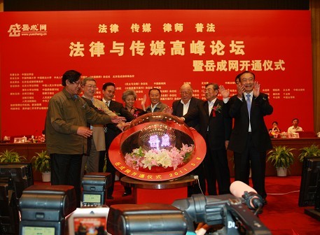 2011年5月8日,由中国法学会名誉主办,中国传媒大学、中国政法大学、中央人民广播电台、法制日报社、中国律师杂志社、北京岳成律师事务所主办,北京大学法学院、清华大学法学院、中国人民大学法学院及16家媒体协办,43家媒体提供支持的“法律与传媒高峰论坛暨岳成网开通仪式”在北京人民大会堂隆重举行。全国政协经济委员会主任张左己等国家相关部门的领导、法学界和传媒领域的专家学者、知名律师、资深记者共计800余人参加此次活动。中国法学会常务副会长刘飏、中国传媒大学党委书记李培元、中国政法大学校长黄进等领导到会并致辞。启动仪式上,与会领导共同启动光球,开通了岳成网。论坛开幕式由北京岳成律师事务所岳运生主任主持。