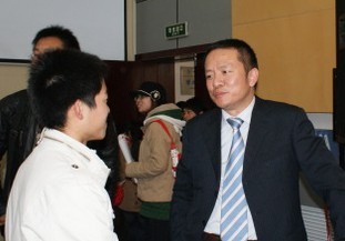 窦大海首先介绍了自己的创业动机并围绕“食为天,菜品鉴人品;人为本,低价赢评价”详细介绍了自己公司的经营情况,赢得了在场同学的共鸣。然后从自己参加“赢在中国”大赛并获得亚军的亲身经历谈起,对大学生创业要注意的问题和具备的素质作了详细解说,使同学们对创业有了进一步的了解。窦大海提醒同学们最关键的是了解自我,给自己一个很清晰的定位,并语重心长地告诫同学们创业需要终身学习,一定要好好珍惜大学时光,做到厚积薄发。