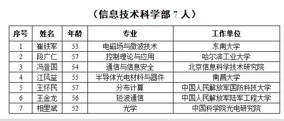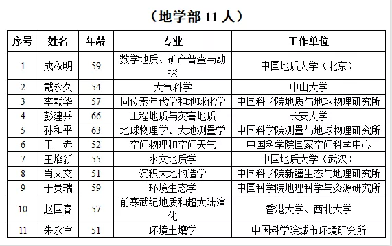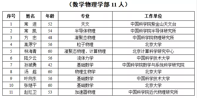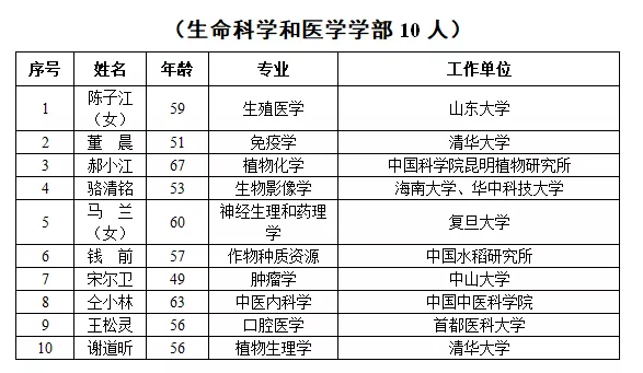2019年新当选中国科学院院士名单