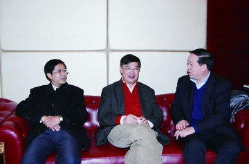 刘人怀院士(中)与山西省科协主席侯晋川(左)太原理工大学党委书记姚芝楼(右)亲切交谈