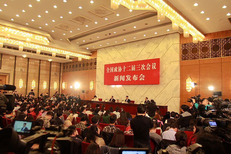 全国政协十二届三次会议新闻发布会在人民大会堂一层新闻发布厅举行.