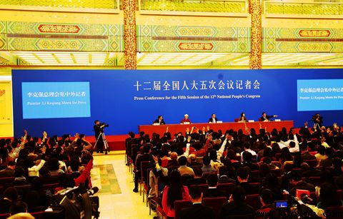 3月15日上午,十二届全国人大五次会议闭幕后,国务院总理李克强在人民大会堂三楼金色大厅会见中外记者并回答记者提题。