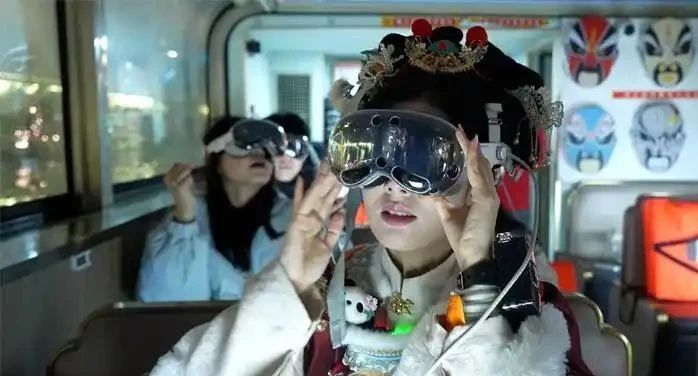 如夜游锦江项目推出的MR数字游船迅速成为夜间消费市场的新宠。游客在NPC引导下,戴上智能设备,体验沉浸式夜游。游船行进中,河岸现代楼宇变为盛唐城楼,波光中锦鲤跃起,太阳神鸟在夜空飞翔,历史与现实、科技与文化交织,构成绝美夜游画卷。