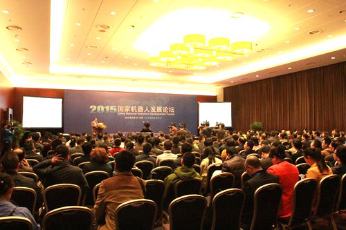 为促进智能机器人基础理论研究、成果原始创新和高技术开发,增强我国智能机器人自主研发水平和工业基础能力,推动其在智能制造、智慧生活、智能产业和国防安全领域的深入应用和产业转型升级,由中国自动化学会和中国机电一体化技术应用协会主办的“2015国家机器人发展论坛”于2015年4月12-13日在北京国家会议中心隆重召开。本次大会安排了7个特邀主旨报告、28个分会场报告和机器人应用及产业展示,汇聚了来自科研院所、高等院校、领袖企业的负责人、院士、学术界和工业界代表400余人,会议规模宏大,现场座无虚席,反响热烈。