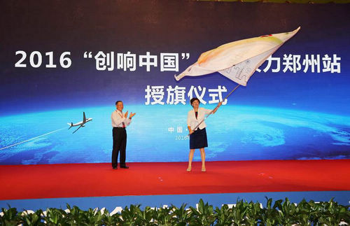 中国科学技术协会副主席沈岩向郑州市人民政府副市长刘东授“创响中国”会旗