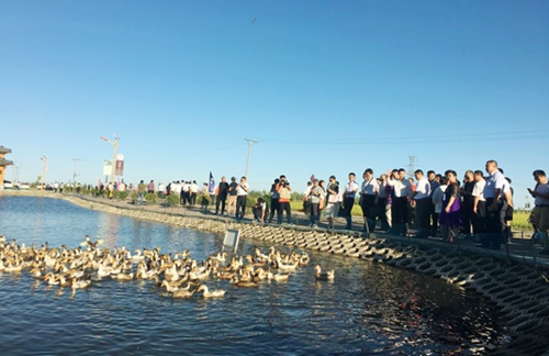 据相关负责人介绍,庆安的水稻广泛采用“稻鱼共育、鸭稻共生”的种植方式。这种在稻田里养鸭、养鱼的种植模式,不仅节约了化肥农药成本,还大大提高了稻米品质,增加了效益。这种古老的循环经济,已被列入全球重要的文化遗产。参观人员在惊讶的同时,更是禁不住由衷地赞叹。