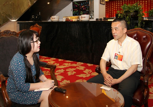 石家庄市科协主席陈健敏(右)接受本刊记者采访