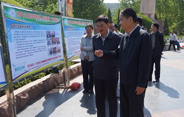 济南市委常委王以才、济南市科协党组书记雷卫国等领导参观展板