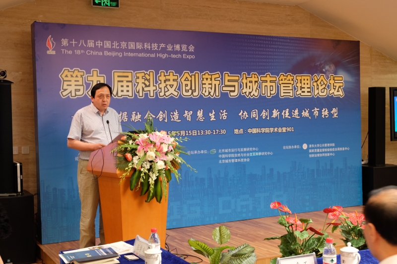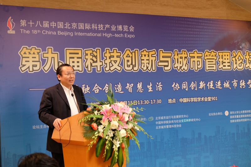 5月15日,第九届科技创新与城市管理论坛在中国科学院学术会堂举行。作为第十八届中国北京国际科技产业博览会的分论坛之一,该论坛至今已经连续举办了9届,受到社会各界和多家媒体的广泛关注与参与。本届论坛由中国科学院科技政策与管理科学研究所、国家质量监督检验检疫总局质量司、中国高技术产业发展促进会等单位主办,由北京城市运行与发展研究中心、中国科学院自然与社会交叉科学研究中心、北京城市管理科技协会等单位承办,由清华大学公共管理学院、国家质量监督检验检疫总局信息中心、创新治理协同创新中心等单位协办。