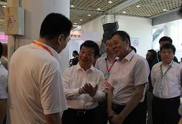 山东省政府副省长于晓明(中左一)、中国纺织工业联合会副会长杨纪朝(中右一)等领导参观展会