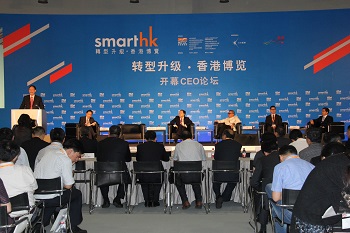 上午,恒隆集团有限公司及恒隆地产有限公司董事总经理陈南禄、恒生银行(中国)有限公司副董事长兼行长林伟中、李永铨设计廔有限公司创作总监李永铨、嘉里物流(香港)有限公司执行董事刘健培以及浪潮集团执行总裁王兴山出席“转型升级‧首选香港”CEO论坛,并联同嘉宾主持─时尚品牌策划有限公司应用教授/行政总裁袁文俊,剖析企业在转型升级上如何应对各种挑战,并分享香港企业成功开拓国际市场的实战经验。