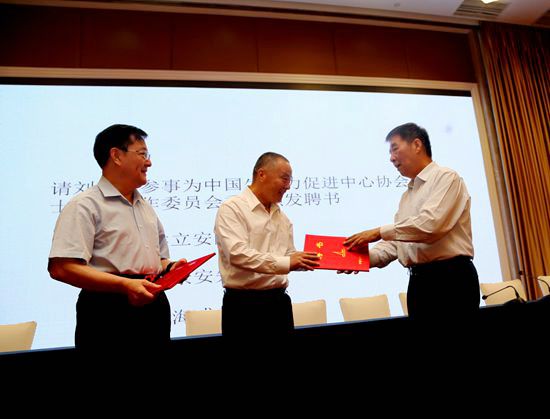 (右一)为侯立安(中)、张景安颁发了院士专家工作委员会聘书