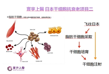 项目二是自身脂肪干细胞抗衰老日本之旅,首先要去日本做体检和自体脂肪干细胞提取,然后经过10天左右,待院方完成干细胞培养,然后安排去日本接受自身脂肪干细胞制剂注射,行程需寰宇上醫咨询顾问协助确定;