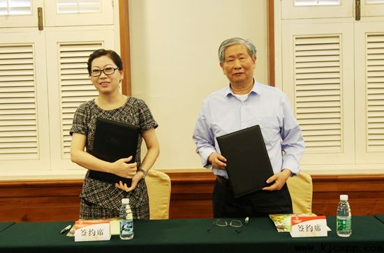 王浩院士(右一)与九州天美环保科技(天津)有限公司总经理初利国签署