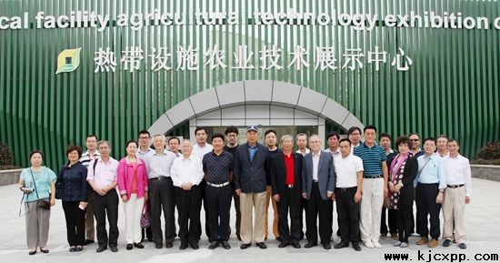 在热带设施农业技术展示中心参观调研,前排(右二)为来庆强副县长