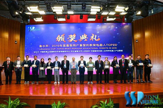 “衡水杯2019年度最受用户喜爱的教育机器人TOP20”颁奖典礼在开幕式后举行,中国机械工业国际合作咨询服务中心主任周京明主持颁奖典礼,衡水市委常委、常务副市长王伟,国际仿生工程学会会士、南京航空航天大学教授/仿生结构与材料防护研究所所长戴振东,衡水市桃城区委书记郝卫东,桃城区区长张士民为获奖企业颁奖,为显示对本次颁奖的重视,获奖企业提供获奖展品并派专员参加,深圳市优必选科技股份有限公司全球营销副总经理郭中华,深圳勇艺达机器人有限公司副总裁贾湛,获得第一名的墨子(深圳)人工智能技术有限公司总裁王立峰等均来到现场,本次活动受到了教育机器人企业的高度关注与支持,本次评选共有105款国产的教育机器人参与评选,累积投票128740张。评选活动设专员监督管理,保证了评选活动的公开、公平、公正。