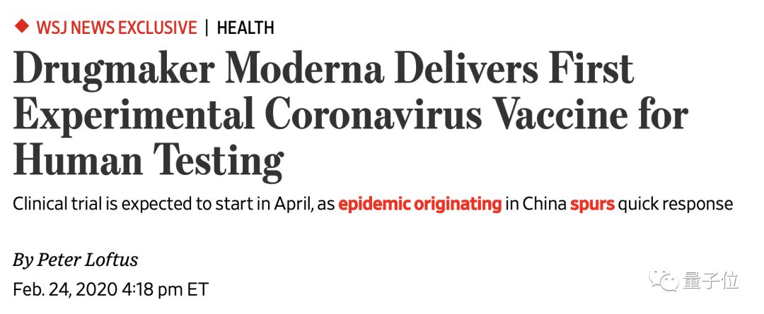 《华尔街日报》刚刚报道,美国制药公司Moderna,已经成功研制出针对新冠病毒肺炎——SARS-CoV-2的人体疫苗,并已将第一批疫苗送美国国家卫生研究院开启安全性临床试验。