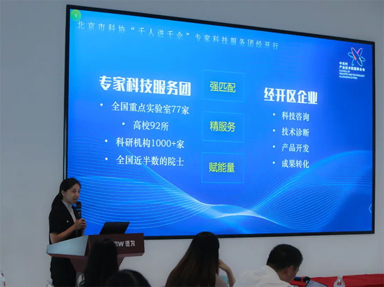 中关村产业技术联盟联合研究室有关负责人介绍了由经开区科技创新局联合北京市科协组织的“千人进千企”专家科技服务团经开行
