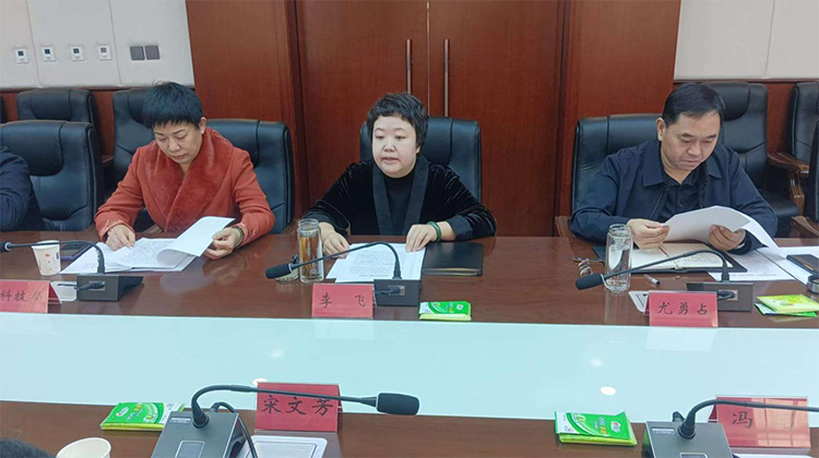 莲池区区委常委、副区长李飞(中)介绍科技创新工作情况