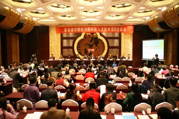 11月20日,由济南市科协主办的省会城市群经济圈科技人才项目洽谈会在济南市舜和国际正式启动。山东省科协副主席朱明、济南市科协党组书记雷卫国、槐荫区政府副区长刘慧恩以及济南、淄博、泰安等七地市科协代表、部分高校专家、企业代表约150人出席了启动仪式。