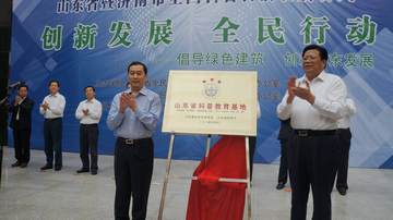 山东省副省长、省全民科学素质工作领导小组组长张超超(左)济南市委常委、副市长苏树伟(右)共同为山东建筑大学科普教育基地揭牌