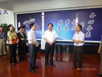 中国科协计财部副部长周文标(前左)、河北省科协党组书记李宗民(中)等一行参加星箭玻璃有限公司