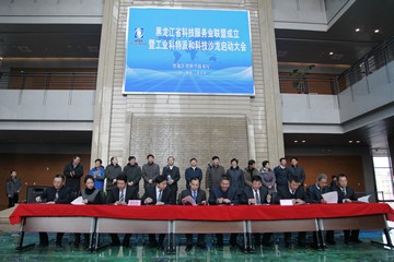 会上,黑龙江省科技服务业联盟理事长向与会代表介绍了联盟组建情况及下步打算,高新技术发展及产业化处有关负责同志解读了工业科技特派员与科技沙龙两项工作的意义、内涵,并对近期工作进行了安排布置。随后,会议组织科技服务业联盟成员单位签署联盟合作协议,并为我省第一批工业科技特派员颁发了工业科技特派员聘书。