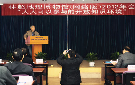由中国地理学会、国际科学技术数据委员会(CODATA)发展中国家任务组、中国国家委员会联合中国科学院集邮协会共同举办的“人人可以参与的开放知识环境—林超地理博物馆(网络版)2012年会”于1月7日上午在中国科学院地理科学与资源研究所举行。
