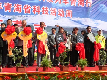 开幕式上,相关部委领导和北汽福田集团专门为青海省湟中、乐都等6个县捐赠科技服务车;向青海省捐赠青少年创新操作室、科技服务站、远程教学电脑、科学储粮仓、育苗造林机械设备;向青海省优秀科技特派员捐赠科技服务电脑。北汽集团工会主席张辉代表捐赠方、北京农科院陈春秀研究员代表专家团分别发言。