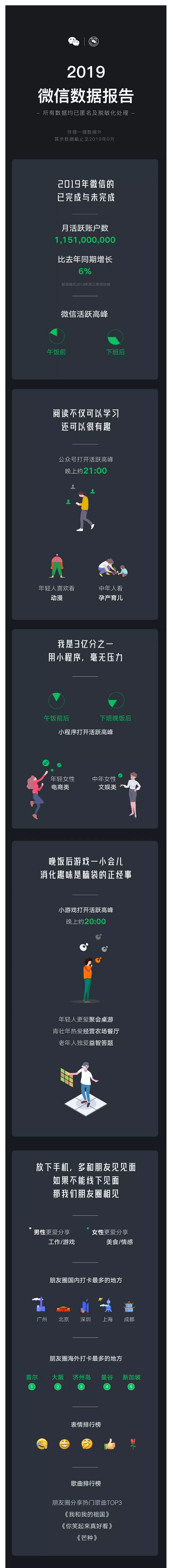 中国网科技1月9日讯今日,微信官方发布“2019年微信数据报告”显示,微信月活跃账户数高达11.5亿,比去年同期增长6%。公众号打开活跃高峰在晚上21:00左右,小游戏打开活跃高峰...行业快讯 2020-01-10