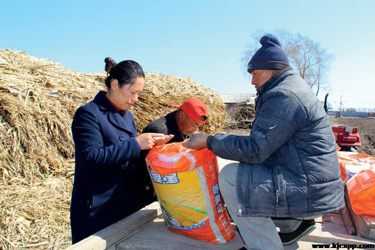 王艳凤在与村民商量饲料运输事宜