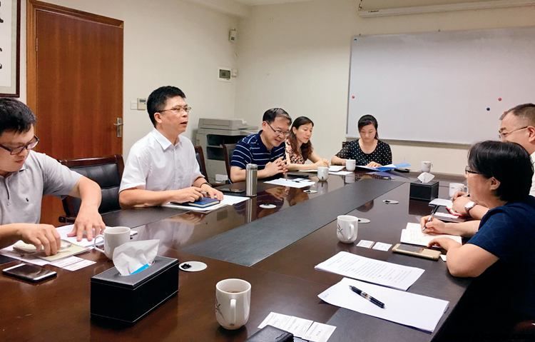 广州市科协副主席曾纯青(左三)向本刊调研团队介绍情况