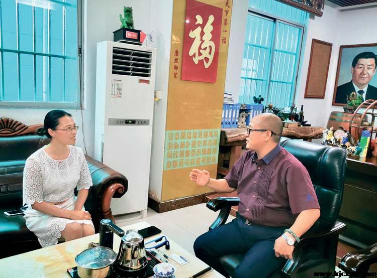 广东汇兴精工智造股份有限公司董事长钟辉(右)与本刊副社长李琪交流