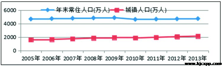图1 2005年-2013年广西区常住人口数与城镇人口数
