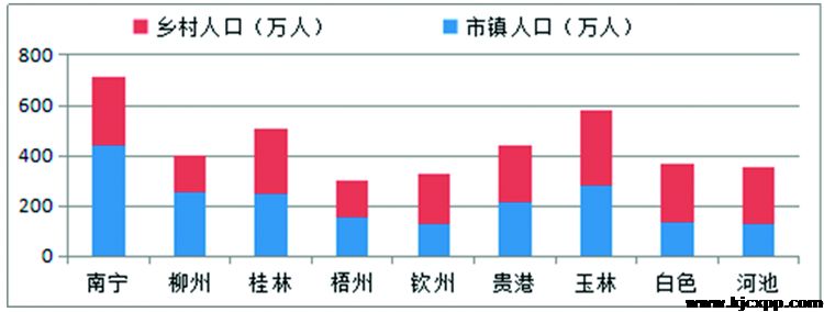 图3 2017年广西市镇人口超100万人口数与乡村人口数