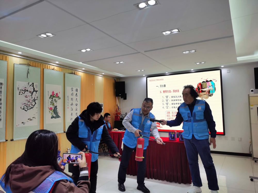 培训设置四大核心模块,将专业知识转化为通俗易懂的科普内容。消防安全科普环节,专家详细讲解火灾隐患排查、灭火器材规范使用及火场逃生技巧,手把手教学灭火器“提拔握压”操作要领,让居民熟练掌握居家消防技能;在自然灾害应急科普中,结合地震避险场景,讲解科学避险原则,指导居民规范做好防护、有序撤离;急救科普聚焦心肺复苏(CPR)与AED使用,拆解关键操作步骤,普及急救黄金时间知识。