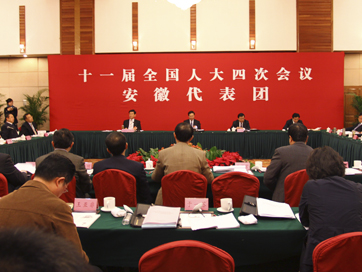 3月8日,安徽代表团开放日再次受到国内外媒体热捧,会场共聚集了海内外72家媒体100多名记者。安徽省委书记张宝顺就“十二五”发展目标以及经济发展全面转型等问题接受了记者采访。
