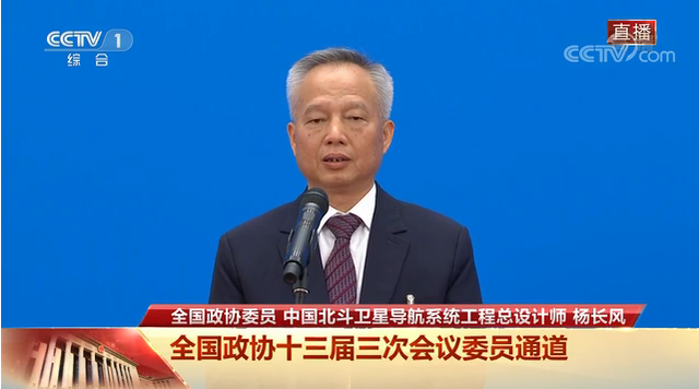 5月21日下午,全国政协十三届三次会议首场“委员通道”开启。全国政协委员、中国北斗卫星导航系统工程总设计师杨长风对北斗系统的目前情况进行了介绍并回答记者问。
