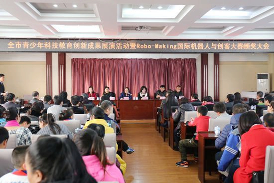 本次大会为参加首届Robo-Making国际机器人与创客大赛获奖的十名学生及两名优秀指导教师颁奖,仪式结束后进行作品展演活动,其中展演作品为2013-2016年在各类科技竞赛或科技活动中具有一定影响力、能够代表当代青少年科技创新水平的发明创造、科学幻想画、智能机器人等,共有包括13所学校、科技教育机构的96件作品进行展演。