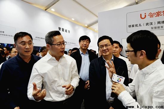 2017“创响中国”武汉站启动仪式结束后,郭生练副省长,宋军部长,沈竹林副巡视员,刘仲初副秘书长,郑浩峻副主任等领导参观了双创成果展。