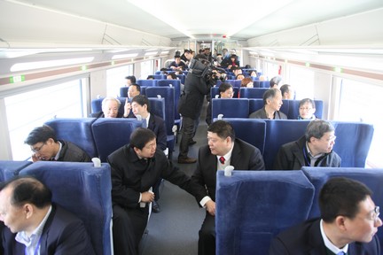 最后,在余卫平董事长的邀请下,与会领导专家一行还登上了时速250公里城际动车组,切身感受了一次舒适、平稳的体验之旅。