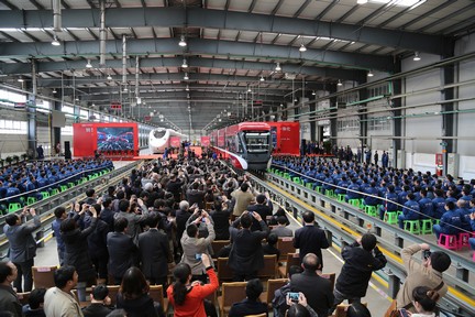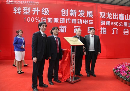 随后,在列调厂房,唐车隆重举行了自主创新研制的新产品推介会,唐车公司两款领跑国内一体化交通的新产品——100%低地板现代有轨电车和国产时速250公里城际动车组,首次亮相公众。这两款新产品以“绿色智能人文一体化”理念,多式联运、互联互通,为不同城市的现代交通需求提供解决方案。该动车组采用智能化设计,拥有完备的车载实时诊断、控制和远程监测系统,既为旅客提供了安全保障,又为行车、调度、指挥、维护保养提供了决策依据,最大程度减轻了人员工作强度,延长了车辆维保周期。